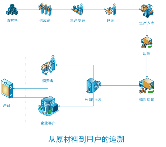 通过一维码、二维码或者RFID无线射频电子标签等载体,对单个产品赋予身份编码信息,利用无线数据采集技术、物联网技术实现产品在生产环节、仓库环节、物流环节、渠道销售及消费者互动等环节的追溯管理,确保产品整个生命周期过程的透明化,全面提升了企业的市场反应速度和管理水平。